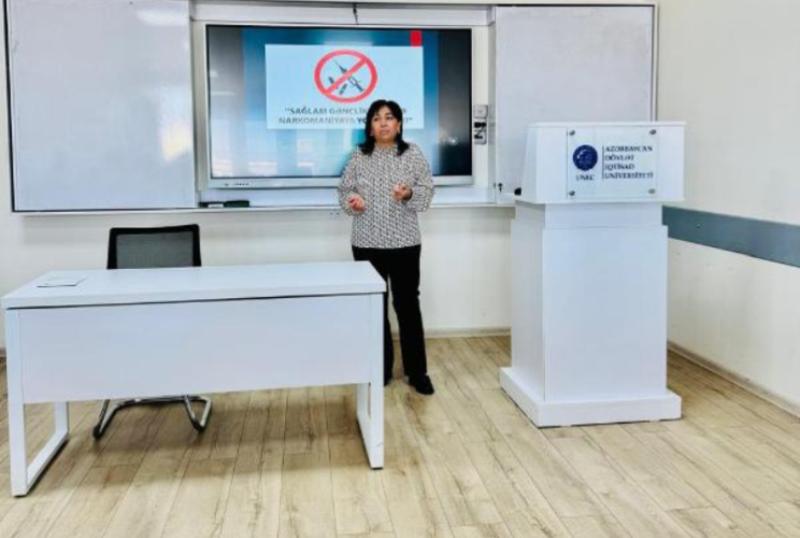 İqtisadiyyat və İdarəetmə fakültəsində narkotik vasitələrin, psixotrop maddələrin və onların prekursorlarının qanunsuz dövriyyəsinə və narkomanlığa qarşı mübarizəyə həsr olunmuş maarifləndirici seminar keçirilib.