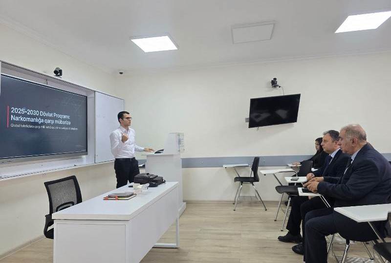 UNEC-in İqtisadiyyat və İdarəetmə fakültəsində “İctimai idarəetmə və sosial innovasiyalar” kafedrasının təşkilatçılığı ilə “Narkotik vasitələrin, psixotrop maddələrin və onların prekursorlarının qanunsuz dövriyyəsinə və narkomanlığa qarşı mübarizəyə dair 2025-2030-cu illər üçün Dövlət Proqramı” çərçivəsində maarifləndirici tədbir təşkil olunub.
