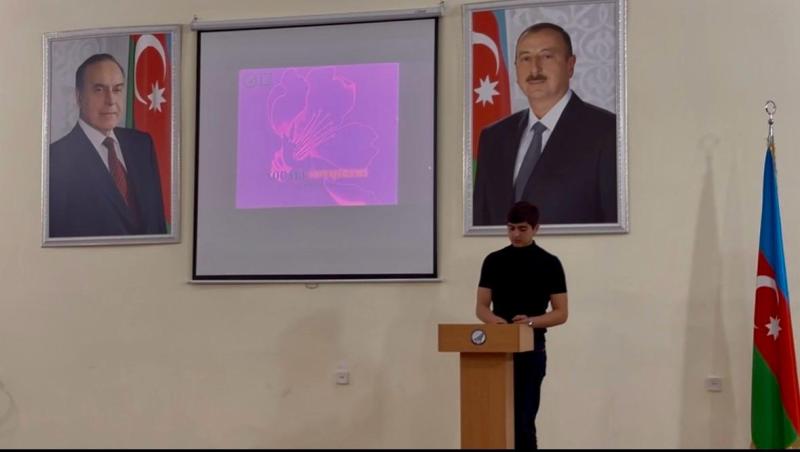 Kollecin tarix müəllimi Turanə Hüseynov Xocalı soyqırımı haqqında geniş məruzə ilə çıxış edərək, Xocalıda törədilmiş amansız qətliam təkcə türk dünyasına deyil, bütövlükdə bəşəriyyətin mütərəqqi dəyərlərinə, insanlığa və beynəlxalq hüquq normalarına qarşı yönəlmiş soyqırım aktı olduğunu bildirib.