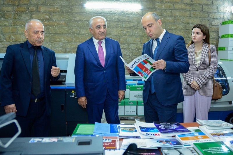 Sonra Emin Əmrullayev UNEC-in yeni qurulan Rəqəmsal Mətbəəsi ilə tanış olub. Nazirə bildirilib ki, mətbəə kitab və jurnalların çap edilməsi, cildlənməsi, eləcə də bütün növ materialların üzərində promo məhsulların hazırlanması üçün ən müasir tələblərə cavab verən, yüksək sürətli avadanlıqlarla təchiz edilib.