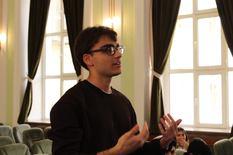 ISE Public Speaking Club-un prezidenti Davud Şeydayev təqdimatla çıxış edərək nitqin insanın şəxsi brendinin formalaşmasında və uğurlu karyera yolunda oynadığı roldan bəhs edib. O, effektiv ünsiyyətin əsas prinsipləri, auditoriya qarşısında inamlı çıxış, fikirlərin düzgün strukturlaşdırılması, eləcə də bədən dili və səs tonunun təsirli istifadəsi kimi vacib məqamlara toxunub.