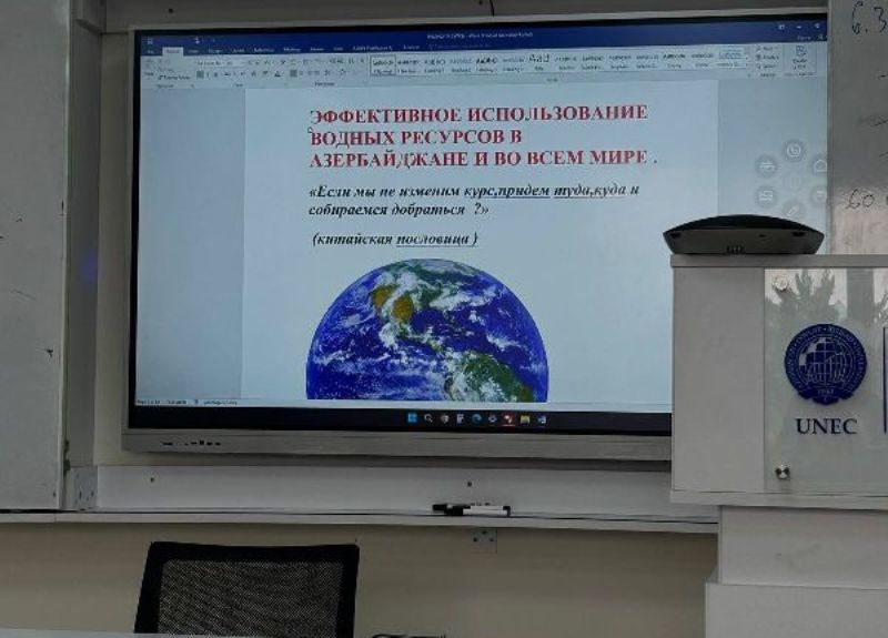 UNEC Rus İqtisad Məktəbində (RİM) “Ətraf mühitin mühafizəsi və iqtisadiyyatı” kafedrasının dosenti Adik Məmmədov tərəfindən sudan səmərəli istifadə mövzusunda açıq mühazirə keçirilib.