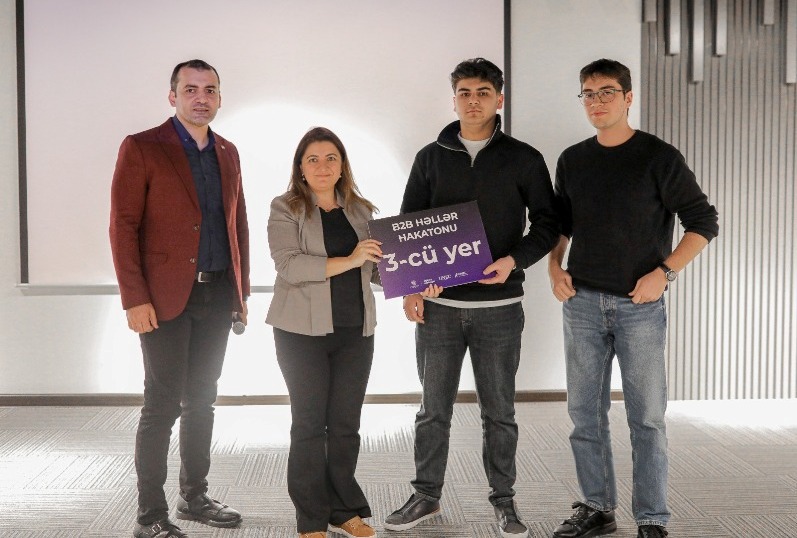 “B2B həllər” hakatonu korporativ mühitdə biznes problemlərinin həllinə həsr olunub. Seçim mərhələsindən keçən 60 tələbədən ibarət 15 komanda yarışda iştirak edib. Gərgin və rəqabətli mübarizə nəticəsində Rəqəmsal iqtisadiyyat fakültəsinin tələbələrindən ibarət “Enthuzone”, “Savai” və “ITeaguys” komandaları ilk üç yeri tutaraq qalib olublar.