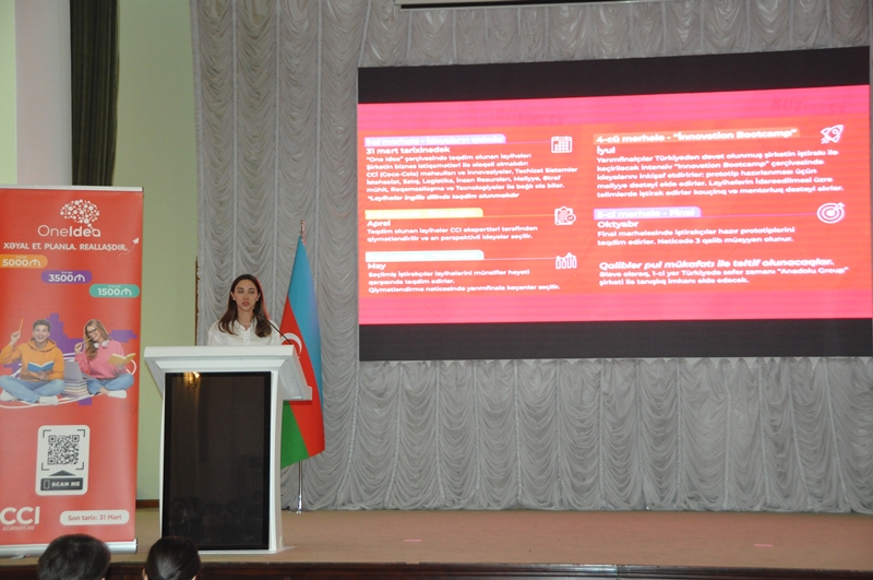 Azerbaijan Coca-Cola Bottlers MMC və UNEC Karyera Mərkəzinin birgə təşkilatçılığı ilə 16 mart 2026-cı il tarixində tələbələr üçün “One Idea” layihəsinə həsr olunmuş təqdimat keçirilib.