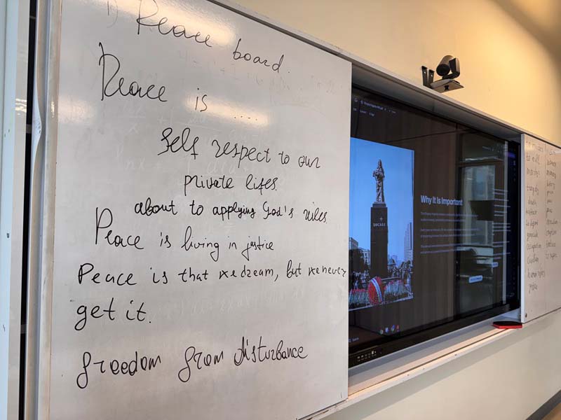 Sonda tələbələrə “Sülh nədən başlayır?” ifadəsini öz sözləri ilə tamamlamaları tapşırılıb. Cavablarda anlayış, hörmət, empatiya, tolerantlıq və təhsil kimi dəyərlər ön plana çəkilib.