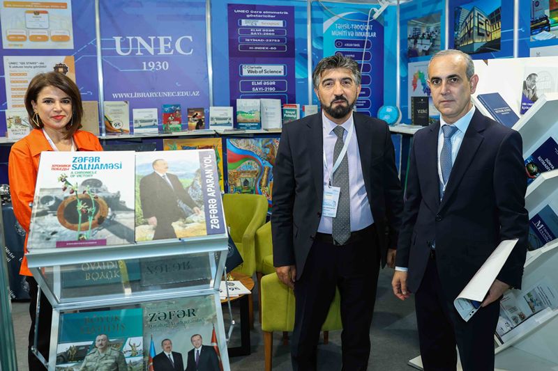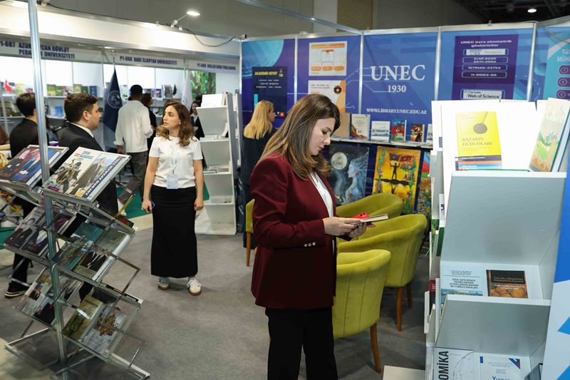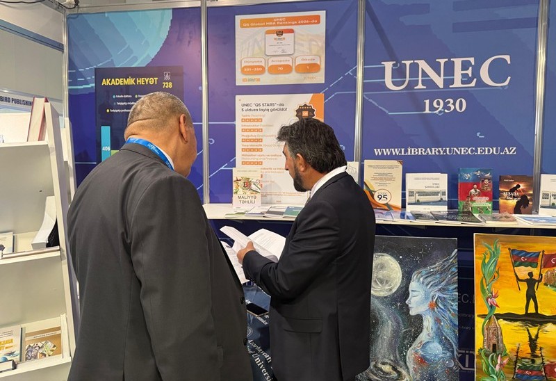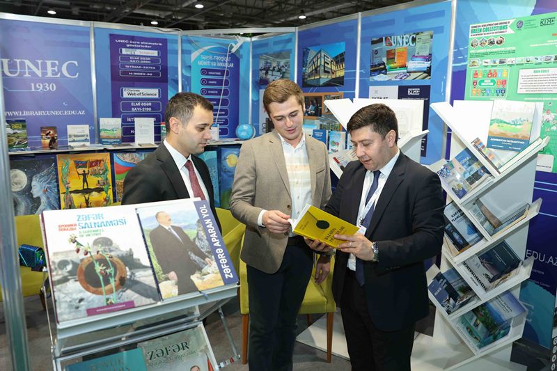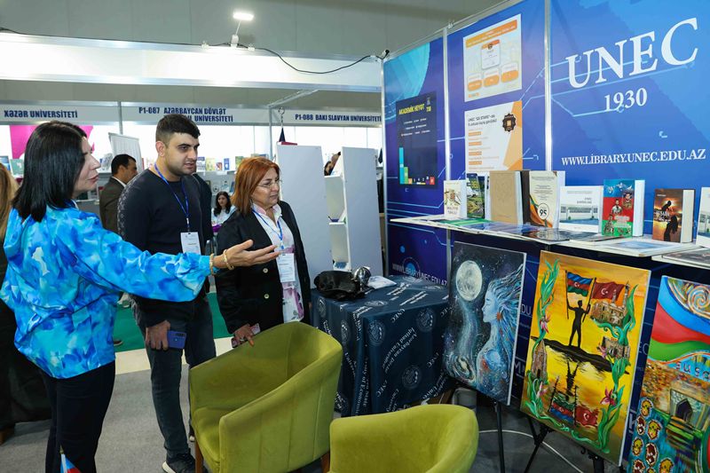 UNEC-in Kitabxana-İnformasiya Mərkəzinin hazırladığı stenddə universitetin Rəqəmsal Nəşriyyatı tərəfindən nəfis tərtibatla çap edilmiş kitablar, jurnallar, eləcə də UNEC müəllimlərinin müəllifi olduqları əsərlər və tərcümələr təqdim olunur. Sərgidə, həmçinin UNEC Dizayn Məktəbinin tələbələrinin rəsm əsərləri nümayiş etdirilir.