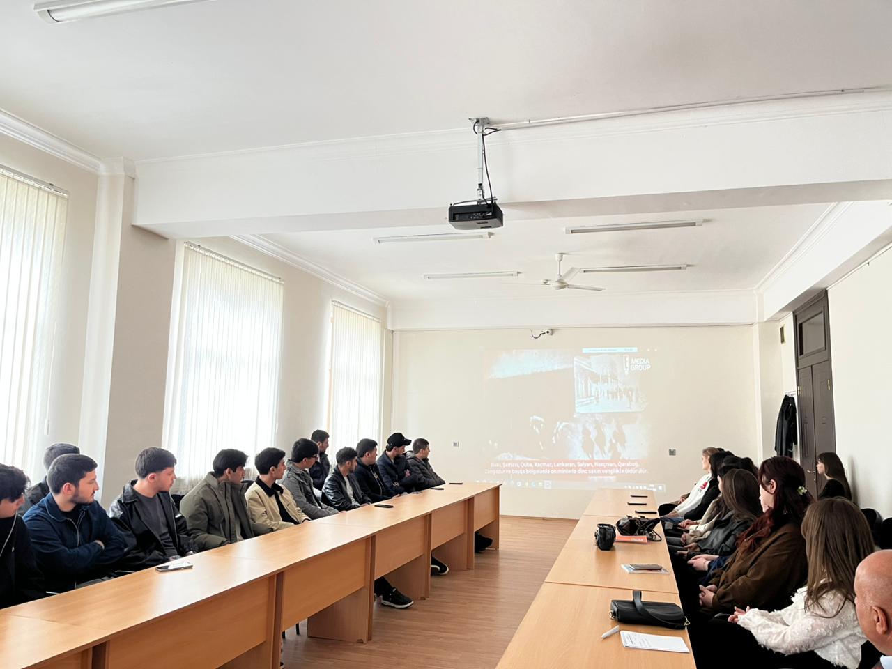 Filialın Tədris və elmi işlər üzrə direktor müavini, dosent Həqiqət Qədimova, İqtisadiyyat və İdarəetmə bölməsinin baş müəllimi Qüdrət Qırtımov çıxışlarında soyqırımın baş vermə səbəbləri və acı nəticələri barədə geniş məlumat verərək, bu tarixi dərslərin milli kimliyin formalaşmasındakı rolundan bəhs ediblər.