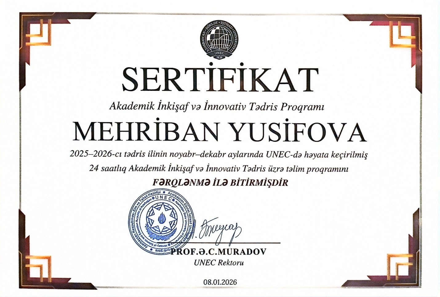 FƏXRİ FƏRMAN - Yüksəkixtisaslı mütəxəssislərin hazırlanmasındakı xidmətlərinə görə və UNEC-in 95 illik yubileyi münasibətilə, ƏMR №498/3/2025 (18.07.2025)