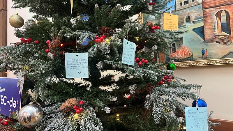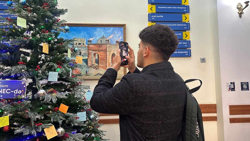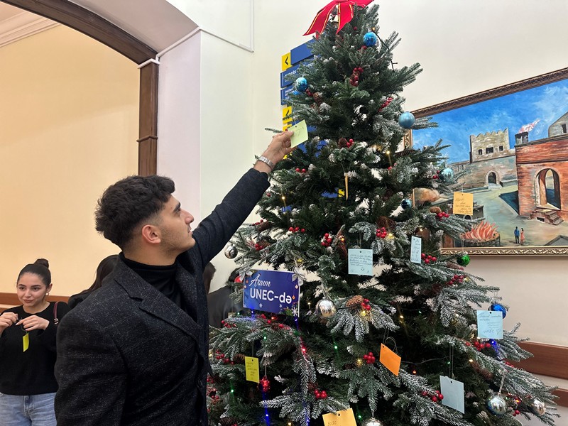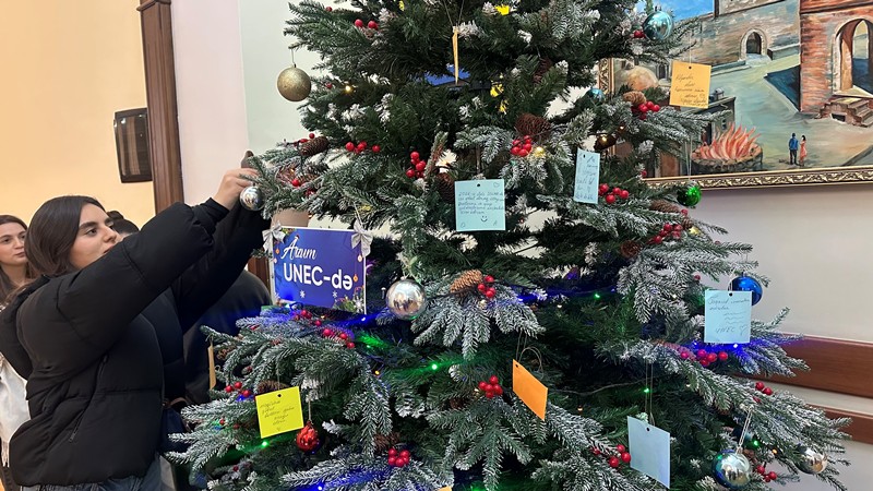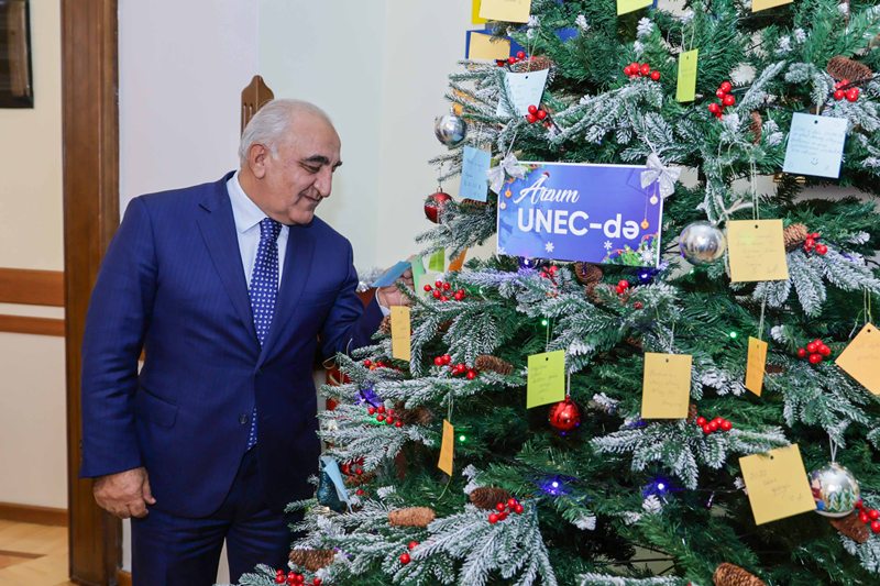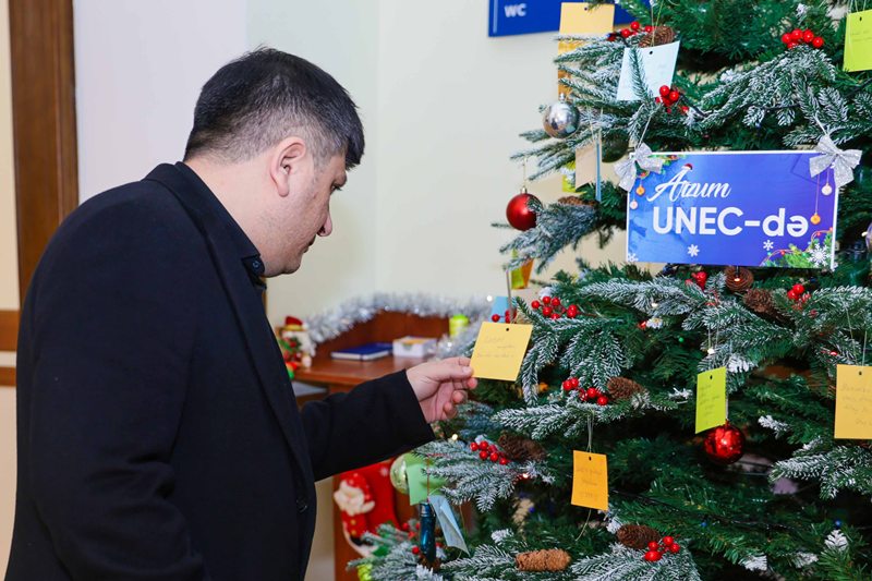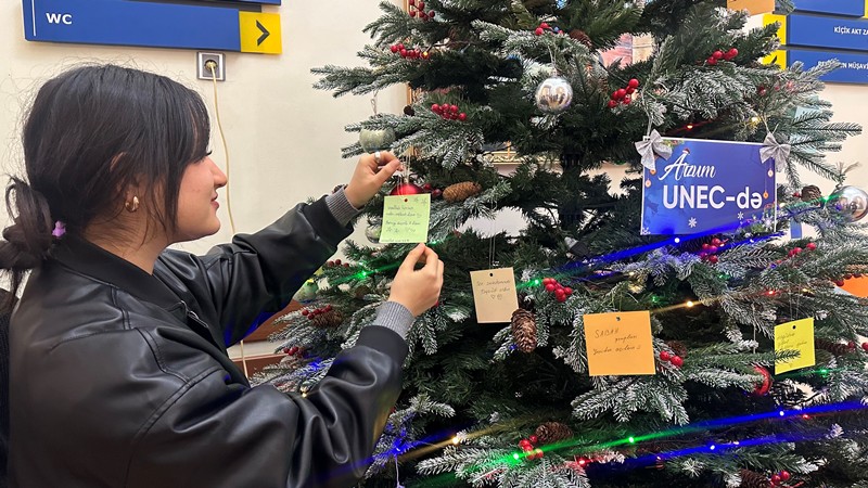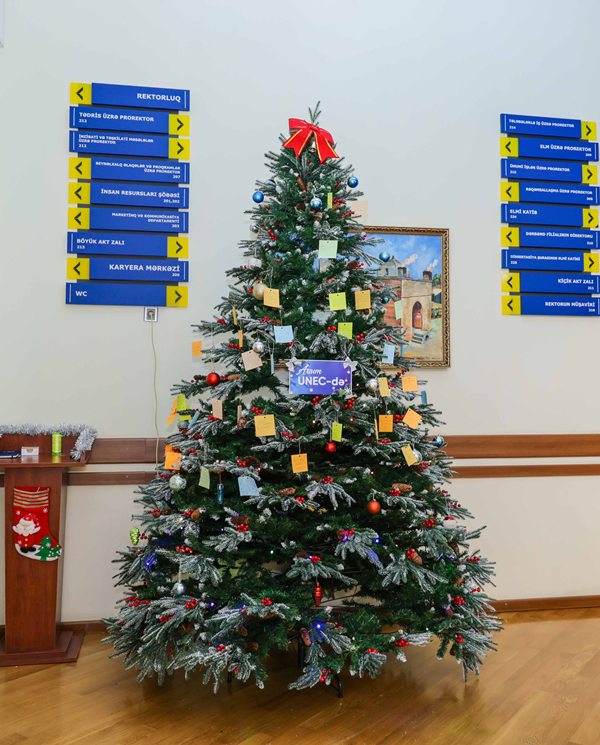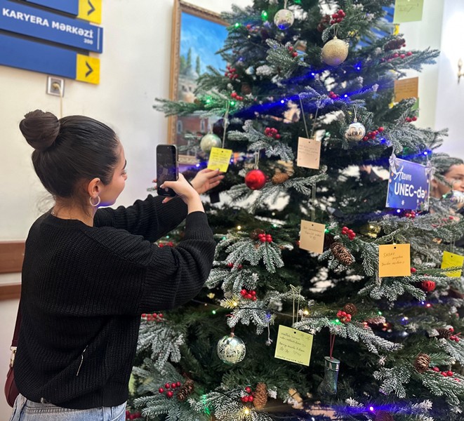Within the framework of the project, students can write their New Year wishes on specially designed cards and hang them on UNEC’s New Year tree. Implemented across all academic buildings, the project not only brings a holiday spirit to the university but also unites students’ heartfelt wishes in a single setting.