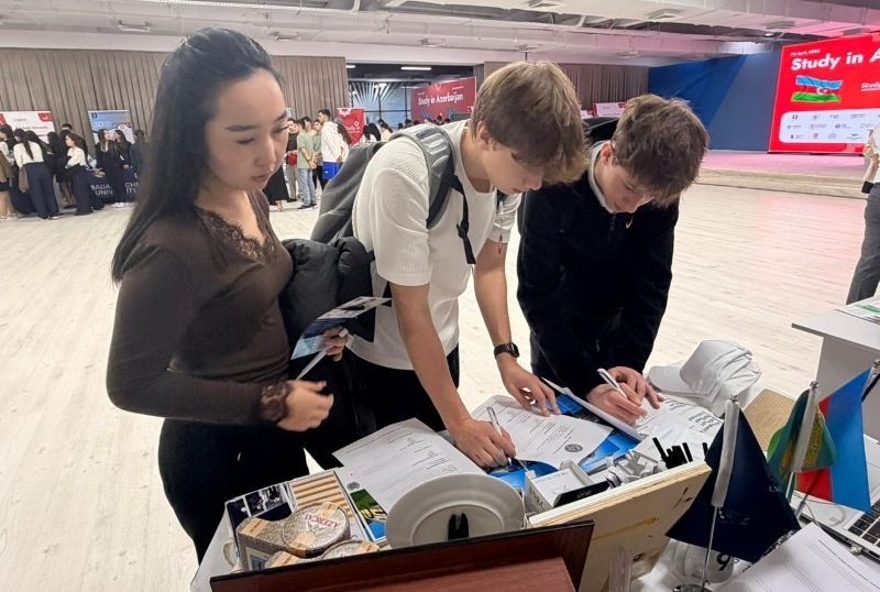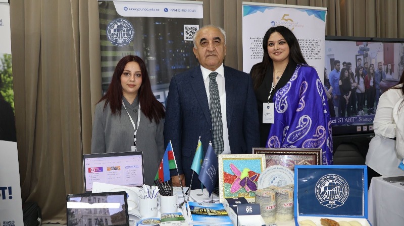 The exhibition, organized on 7-8 April at Al-Farabi Kazakh National University, convened a broad academic and prospective student audience. Within this framework, representatives of UNEC’s Department of International Cooperation delivered comprehensive presentations on the university’s academic offerings and institutional strengths. Students and applicants from various secondary and higher education institutions across Kazakhstan who visited the UNEC stand were provided with detailed information regarding the university’s international education opportunities, dual degree programs, and advanced teaching infrastructure.