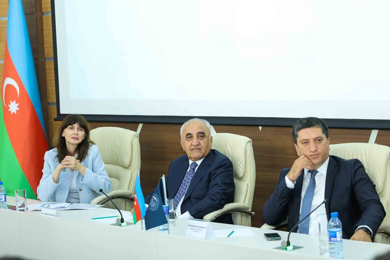 The event was attended by rector of UNEC, professor Adalat Muradov; United Nations resident coordinator in Azerbaijan, Ms. Vladanka Andreeva; advisor to the minister of economy of the Republic of Azerbaijan, Mr. Huseyn Huseynov; head of the Food and Agriculture Organization of the United Nations partnership and liaison office in Azerbaijan, Mr. Nasar Hayat; as well as UNEC students.