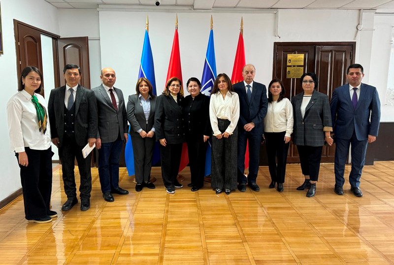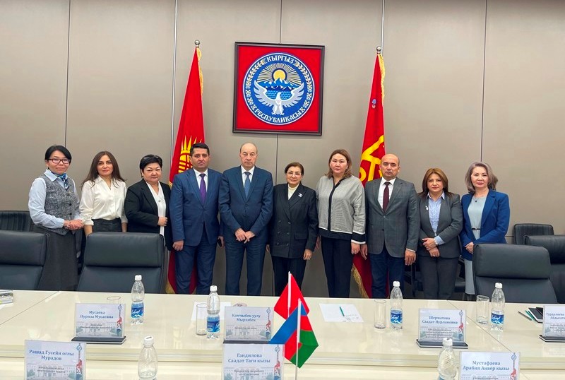 Following this meeting, UNEC’s Vice-Rector for Student Affairs, Assoc. Prof. Saadat Gandilova; Scientific Secretary Arabiyya Mustafayeva; Dean of the Faculty of Finance and Accounting, Assoc. Prof. Hafis Hajiyev; Head of the Finance and Audit Department, Prof. Avaz Alakbarov; Head of the Public Relations Department, Elnara Omarova; and Head of the Internal Audit Department, Assoc. Prof. Rashad Muradov, visited the I. Arabaev Kyrgyz State University for discussions with Aychurok Mirzalimbekova, Acting Vice-Rector for International Relations and Investments; Maksatbek Koychumanov, Director of the Institute of Economics and Management; and other unit leaders.