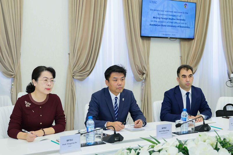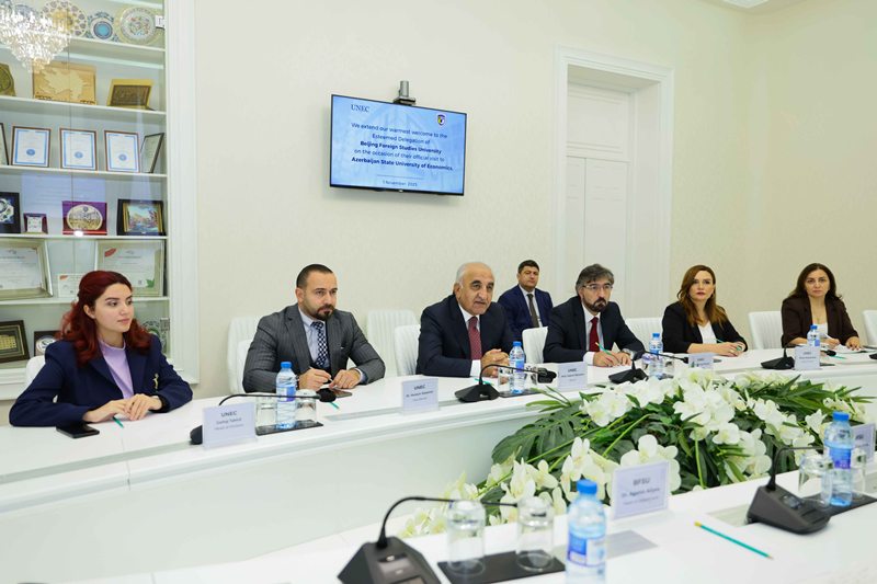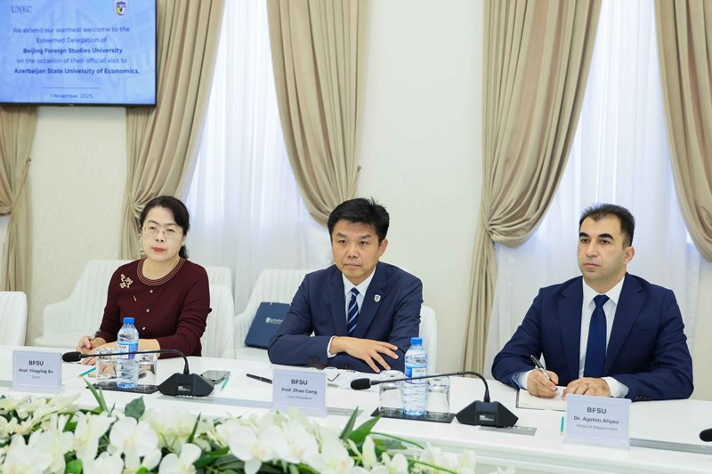 During the discussions, the parties reached an agreement on developing cooperation in several areas, including student and faculty exchange, the implementation of a dual degree programme in “Foreign Language + Economics,” the organization of English language training for UNEC faculty, the application of BFSU’s expertise in foreign language teaching, the establishment of a Foreign Language Learning Centre at UNEC, as well as the joint organization of scientific conferences and translation projects.