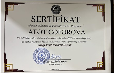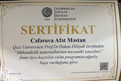 “Mühəndislik və tətbiqi elmlər“ kafedrasının baş müəllimi